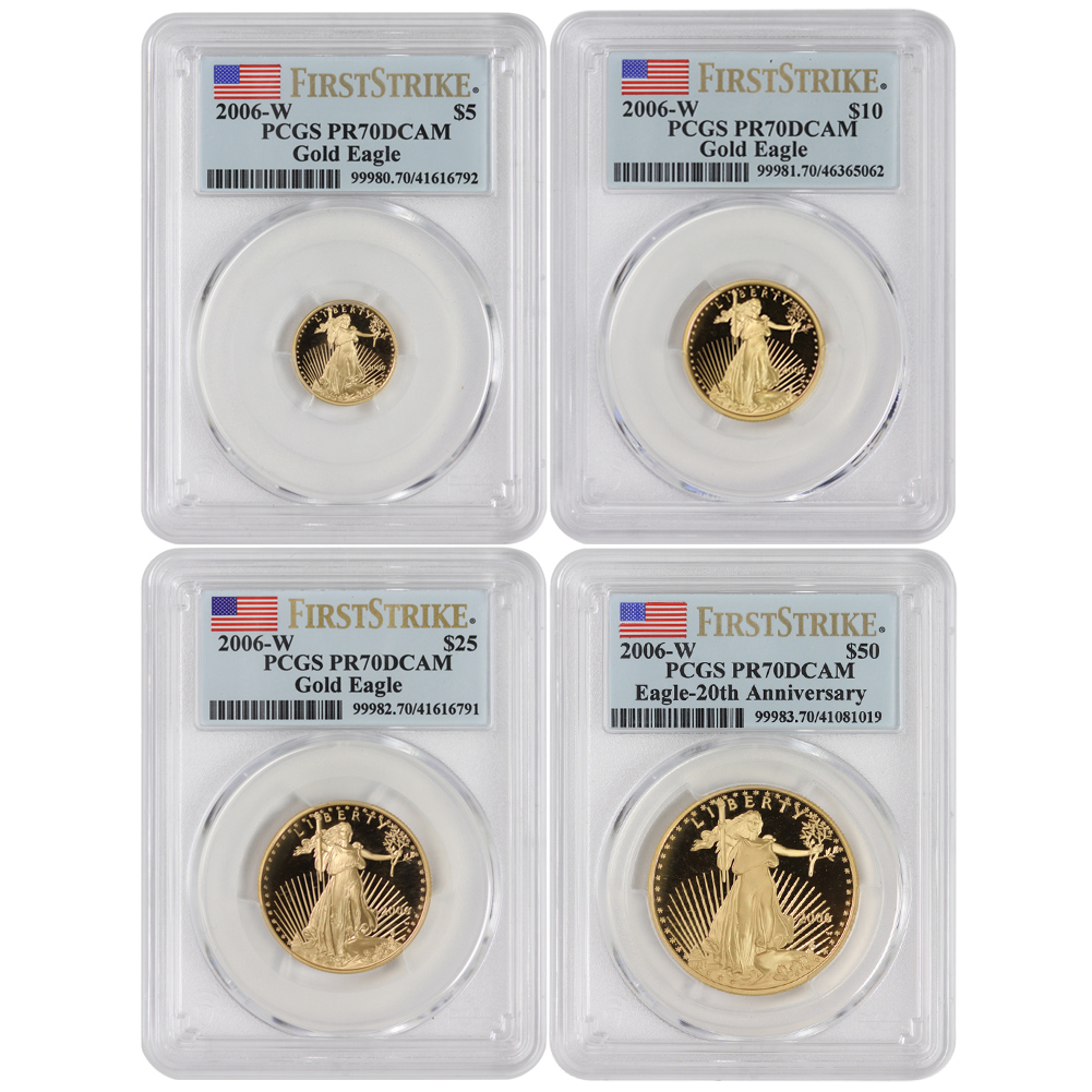 Set of 4 2006-W Gold Eagle PCGS PR70DCAM FS Flag Label