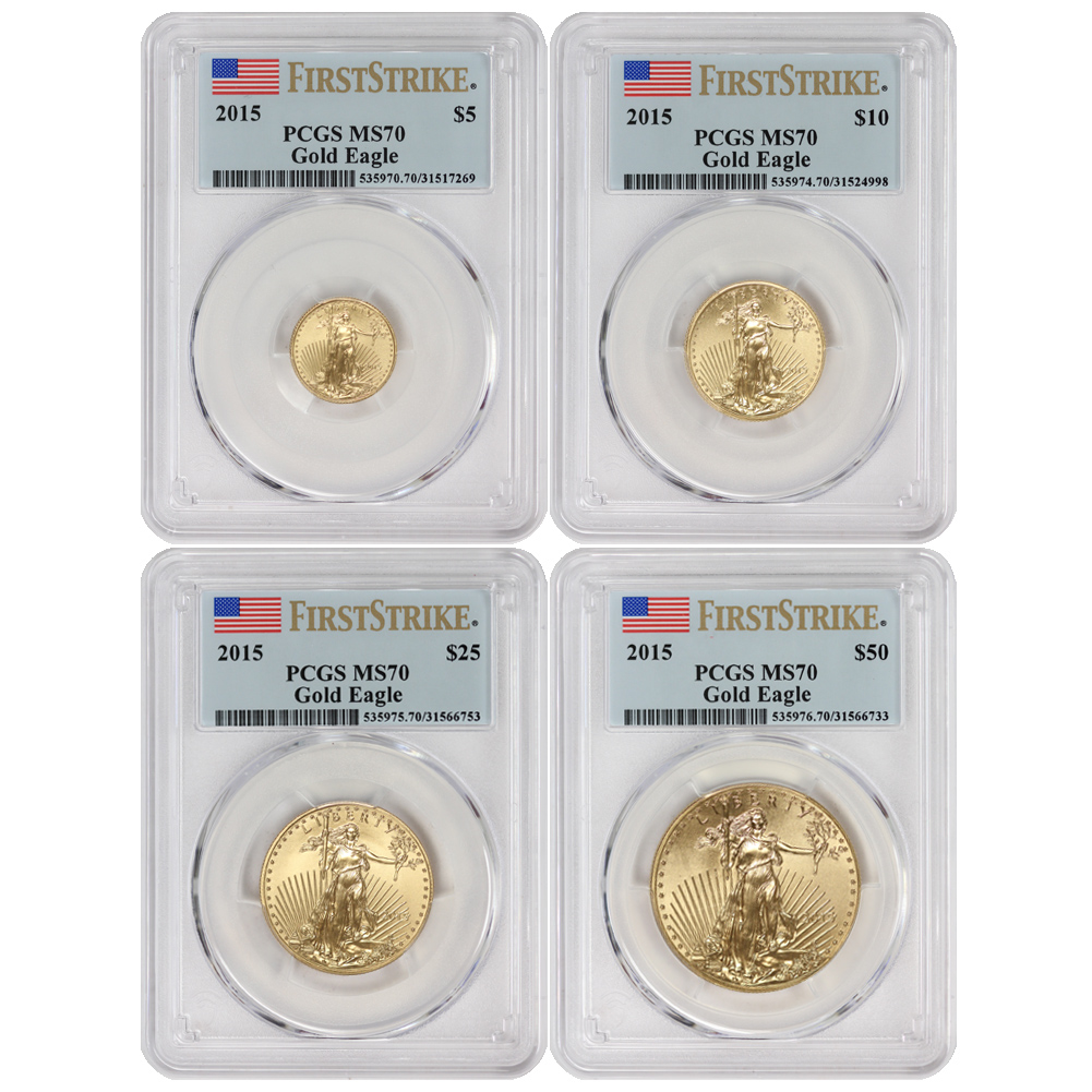 Set of 4 2015 Gold Eagle PCGS MS70 FS Flag Label