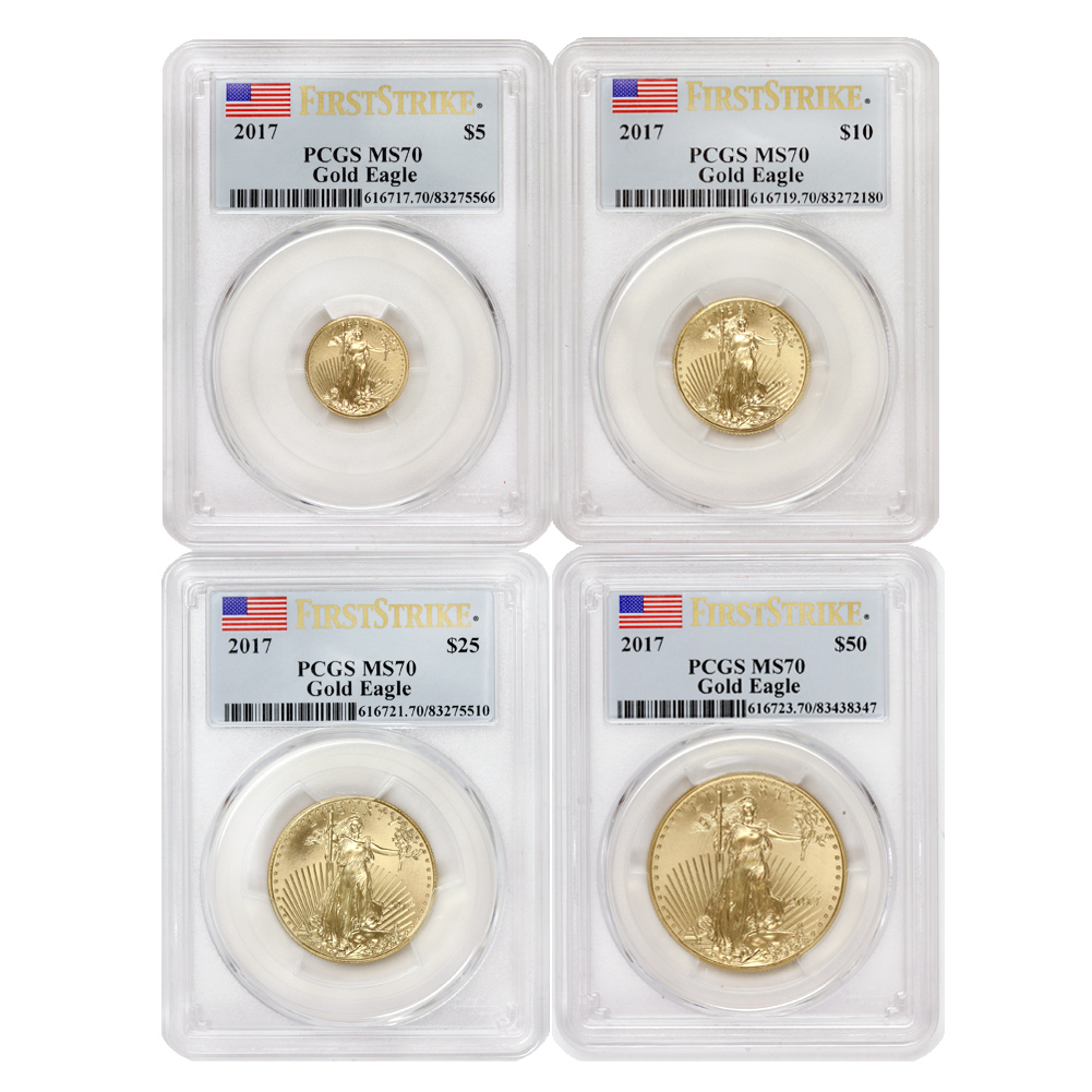 Set of 4 2017 Gold Eagles PCGS MS70 FS Flag Label