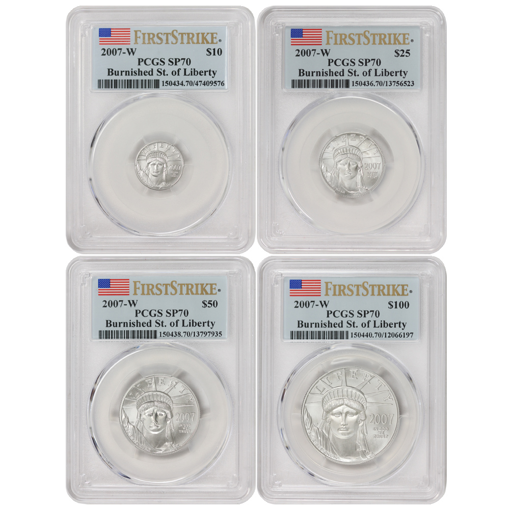 Set of 4 2007-W Platinum Eagle PCGS SP70 FS Flag Label
